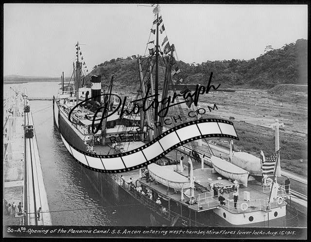 Opening of the Panama Canal,SS ANCON leaving west chamber,Mira Flores,1915 1