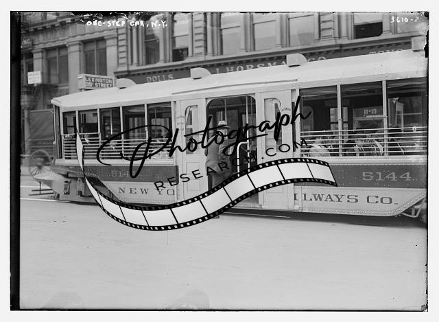 One-step car,N.Y.,New York,streetcar,man getting on,transportation,Bain News