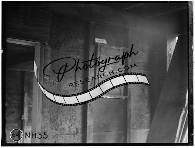 Title: 112. HISTORIC AMERICAN BUILDINGS SURVEY R.A. Waugh, Photographer October 1936 NOTCHING in STUDS for OLD WINDOW FRAMES, NORTH WALL, ORIGINAL KITCHEN, LOOKING NORTH - Colonel Paul Wentworth House, Dover Street (moved to MA, Dover), Dover, Strafford County, NH