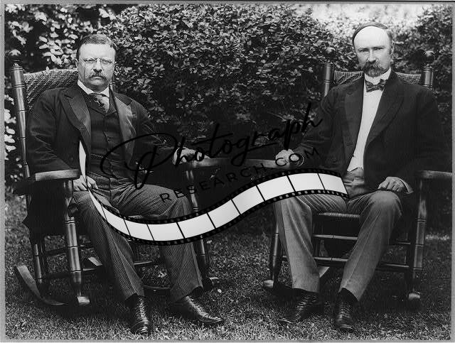 President Theodore Roosevelt,Vice,Charles Fairbanks,rocking chairs,lawn,c1904