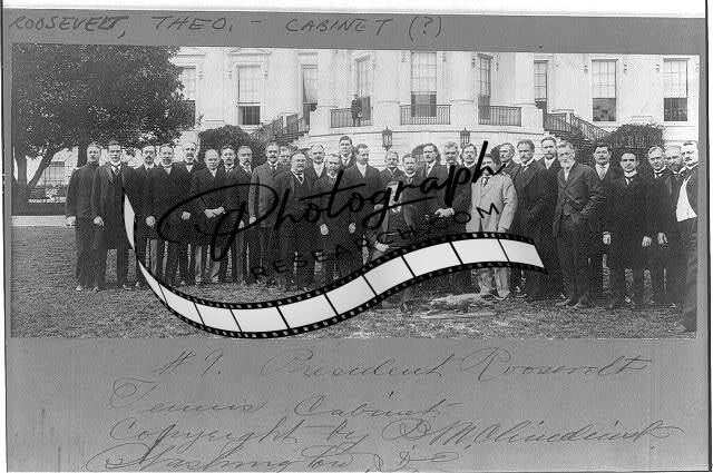 President Theodore Roosevelt,members,cabinet,table,officers,meeting,c1903