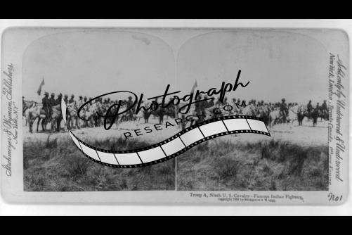 Ninth U.S. Cavalry: Troop A - famous Indian fighters on horseback,c1898,Photo