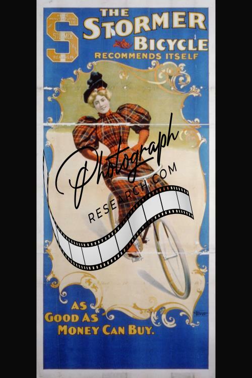 The Stormer Bicycle Recommends Itself,1896,young woman,plaid dress,riding bike