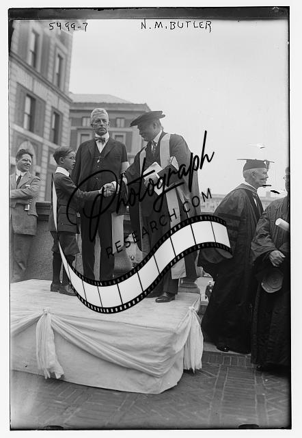 N.M. Butler,graduates,shaking hands,ceremonies,caps,gowns,robe,Bain News Service