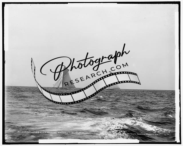 Columbia overhauling Shamrock II,America's Cup Races,regattas,sloop,yachts,1901
