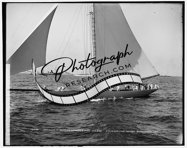 Shamrock I,shipping spinnaker boom,America's Cup Races,yacht,regattas,boat,c1899
