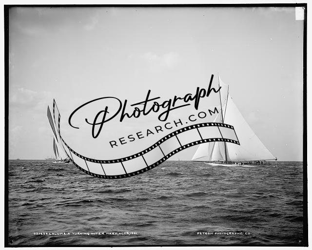 Columbia turning outer mark,America's Cup races,regattas,sloop,yachts,boats,1901