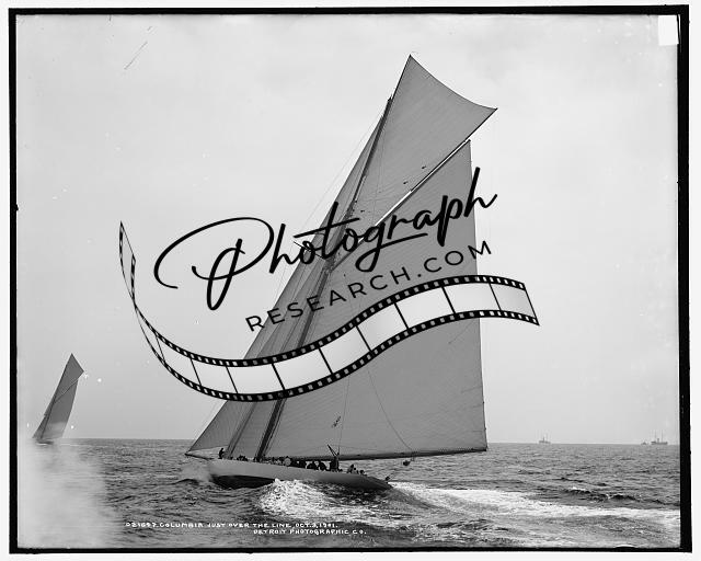 Columbia just over line,sloop,yachts,boats,America's Cup races,regattas,1901