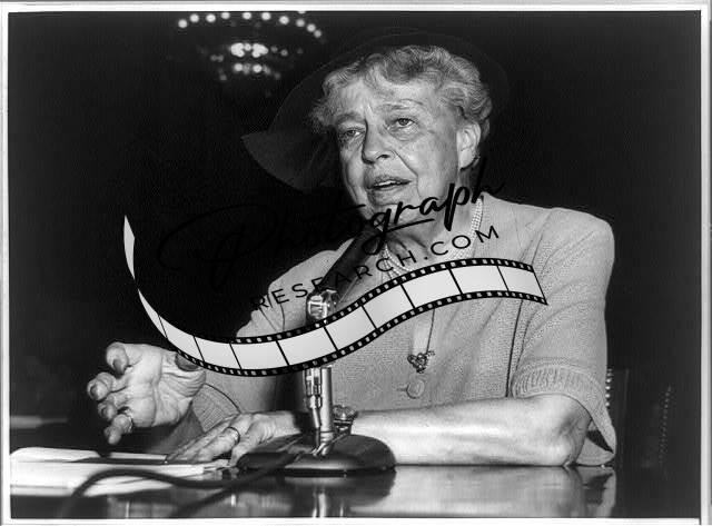Gives her views on U.N. Charter,Mrs. Eleanor Roosevelt,Microphone,1955