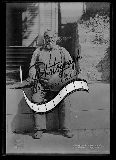 Melon-cholic days,gladdest,year,African Americans,watermelons,fruit,men,c1906