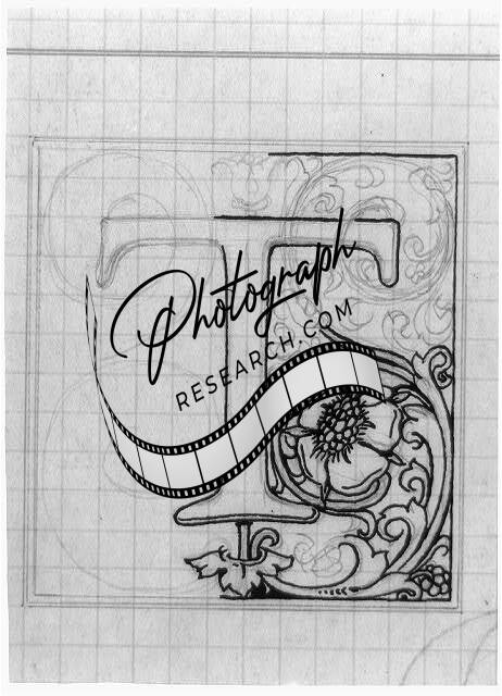 Drawing,partially completed initial T by Frederic Goudy,1865-1947,type designer