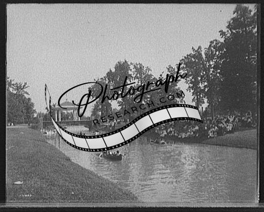 Main canal,band-stand,concerts,crowds,Belle Isle Park,Detroit,Michigan,MI,1900