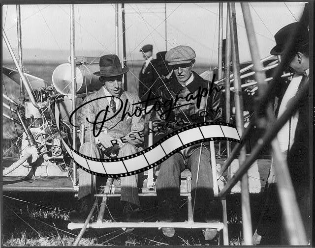 King Alfonso XIII of Spain,Wilbur Wright in Wright aeroplane,Pau,France,1909