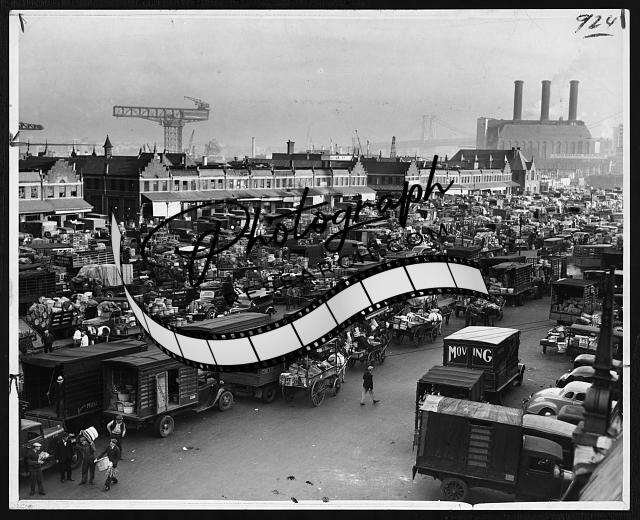 Vast crowd of trucks,horse-drawn carts at the Wallabout Market,Brooklyn,NY,1940