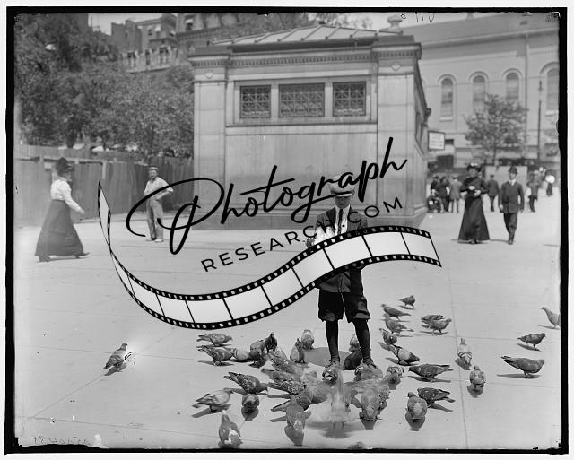 Feeding pigeons,plaza,birds,Boston,Massachusetts,Detroit Publishing Company,1900