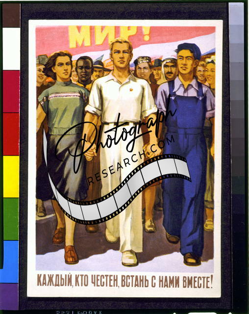 Every honest person, stand with us,Soviet postcard 1952