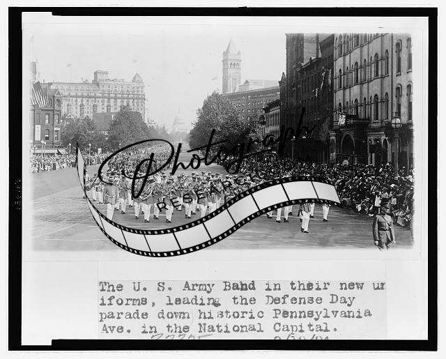 US Army Band,new uniforms,leading Defense Day,Capital,parade,Washington DC,1924