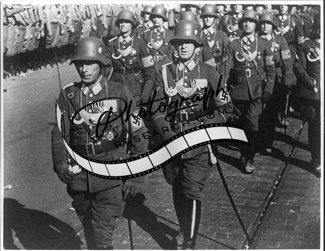 Parade at Nazi party rally, Nuremberg, 1934: Feldjaeger Corps marching