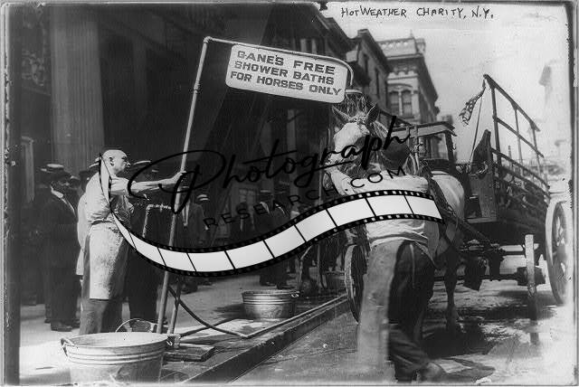 Hot weather charity,N.Y.,New York,free shower baths for horses,August 1911,sign