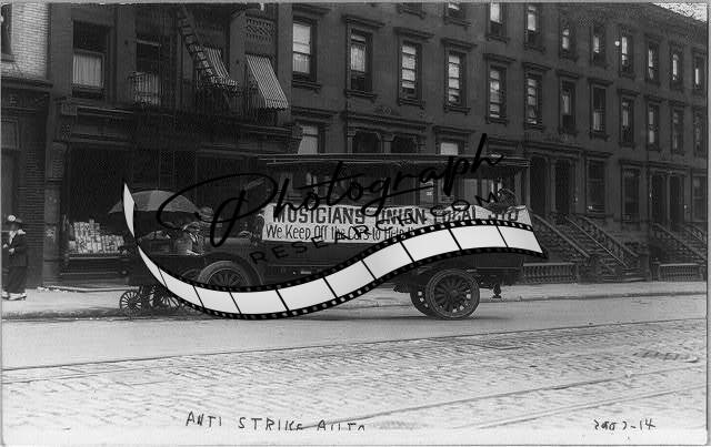 Anti-strike auto,Musicians' union van used to boycott NY street cars,1916
