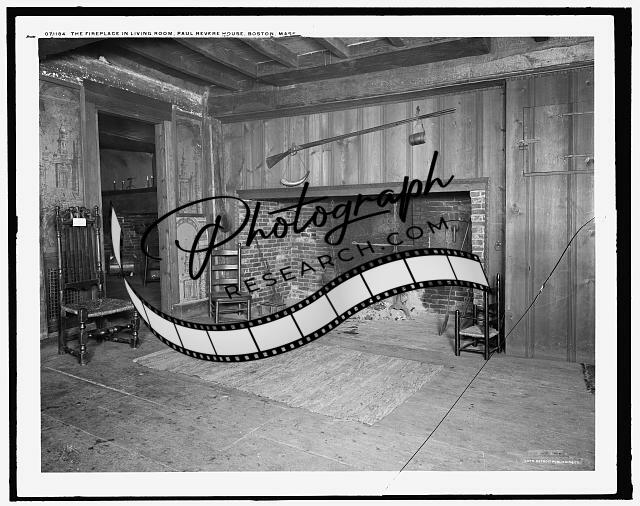 Fireplace,living room,interior,Paul Revere House,Boston,Massachusetts,MA,c1909