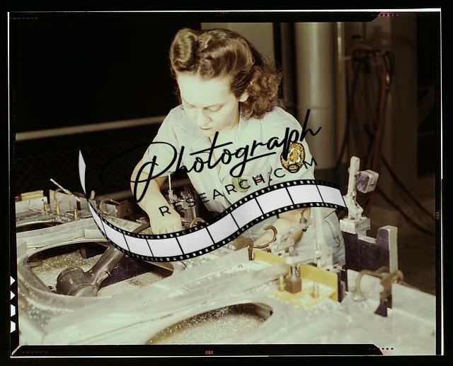 Title: Drilling a wing bulkhead for a transport plane at the Consolidated Aircraft Corporation plant, Fort Worth, Texas