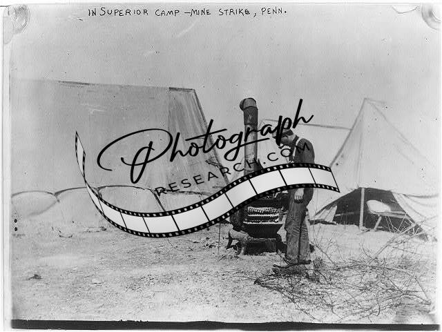 Miner in Superior Camp,Mine Strike,Pennsylvania,PA,wood burning stove?,man,pipe