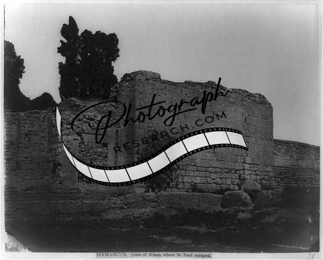 Damascus,Gate,Kisan,where Saint Paul escaped,city walls,Syria,F Bonfils,1870