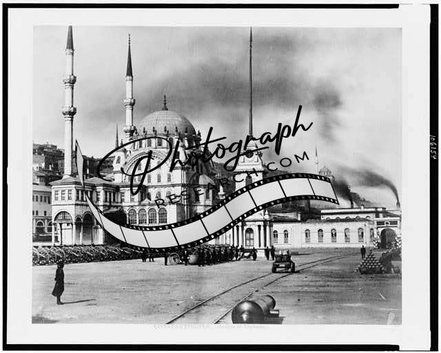 Constantinople,Mosque,armament,domes,spires,cannons,Tophane,Istanbul,Turkey,1860