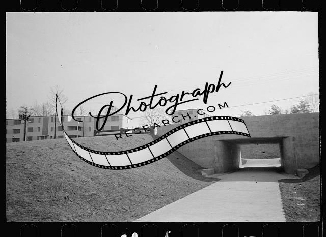 Underpass,apartment houses,Greenbelt,Maryland,MD,February 1938,Rothstein,FSA