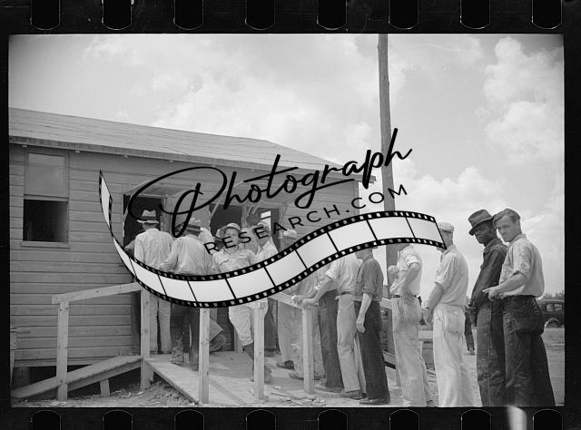 Workmen receiving paychecks,Greenbelt,Maryland,MD,Resettlement Administration,1