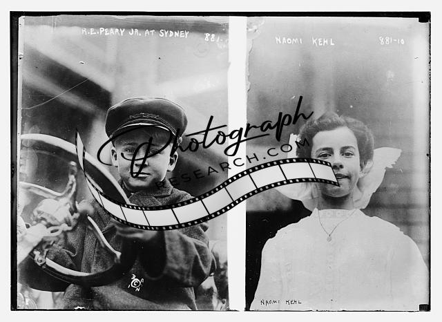 Robert Edwin Peary,Jr,at Sydney,drivers wheel in hand,child,September 1909