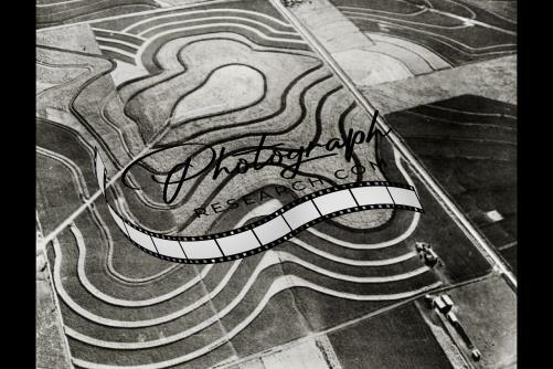Aerial view of Contour plowing,ploughing,farming,1930s