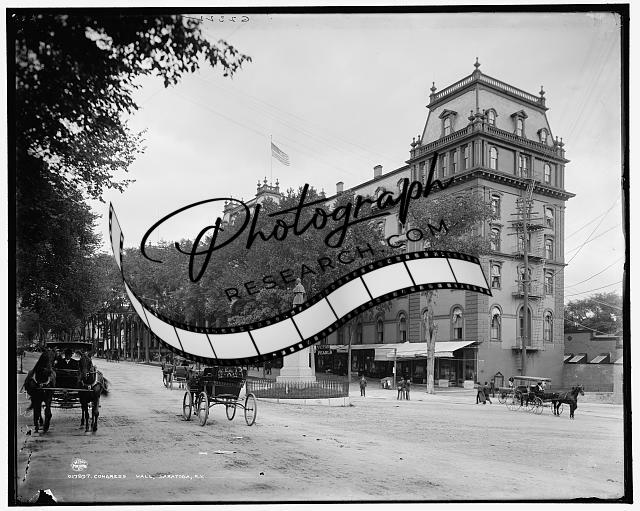Congress Hall,hotels,buildings,carriages,statues,Saratoga Springs,New York,1900