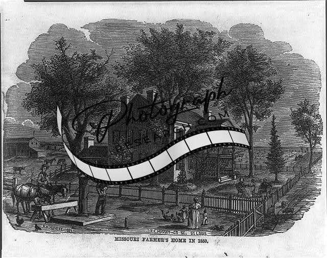 Missouri Farmer's Home in 1859,fence,people,yard,house