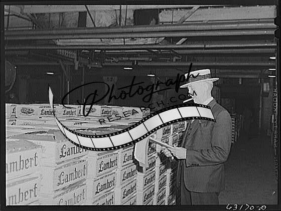 Title: Commission merchants at fruit terminal warehouse before early morning auction. Chicago, Illinois