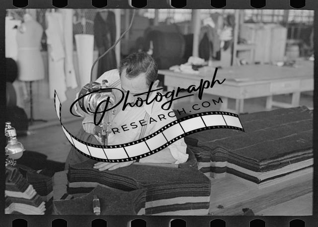 Title: Isadore Snyder, cloak operator, was one of the first to be admitted to Jersey Homesteads because of his aptitude at the machine and his enthusiasm for the success of this cooperative village. Hightstown, New Jersey