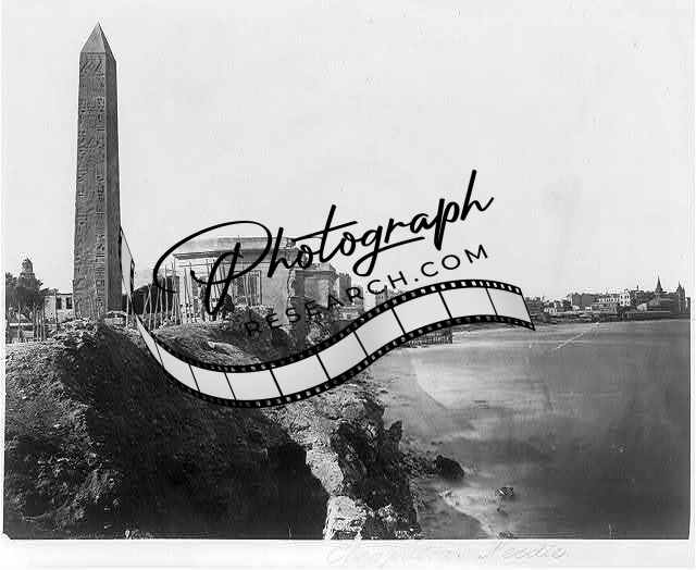 Cleopatra's Needle,Obelisk in Alexandra,Egypt,1880,shoreline