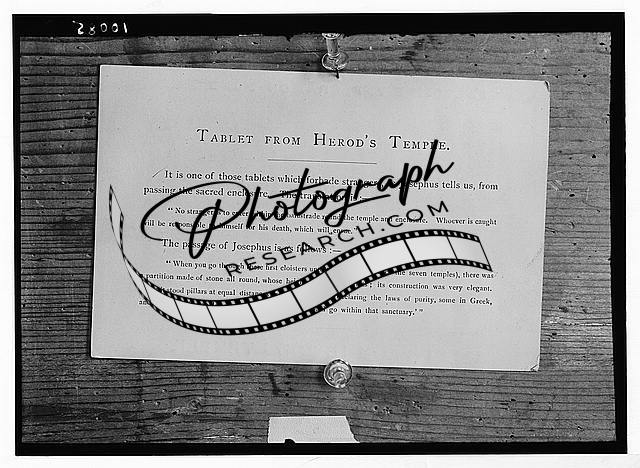 Tablet translation from Herod's Temple,Middle East,American Colony Photo,c1935