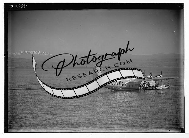 Lido,flying boat Clio,lake with snow-capped Hermon,Middle East,American Colony