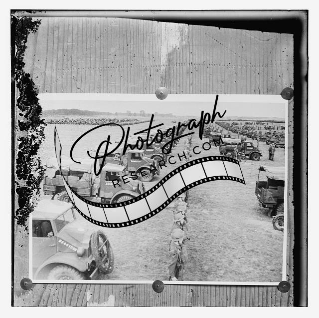 Copy photograph of military trucks,soldiers,Matson Photograph Collection