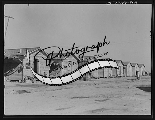 Title: Housing for migratory cotton workers five miles north of Corcoran, California. The famous strikers' concentration camp in 1933 was in Corcoran