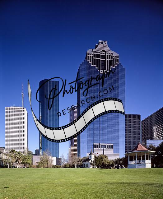 Skyline from Sam Houston Park,Houston,Texas,TX,Cityscape,Skyscrapers,Highsmith