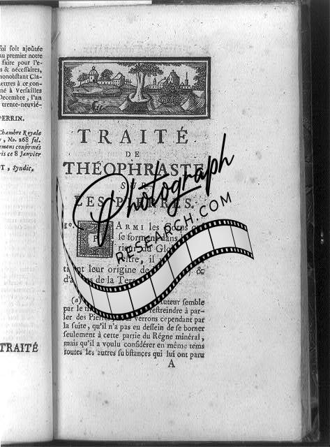Title page,Traite,pierres,townscape headpiece,decorated initial P,geology,1754