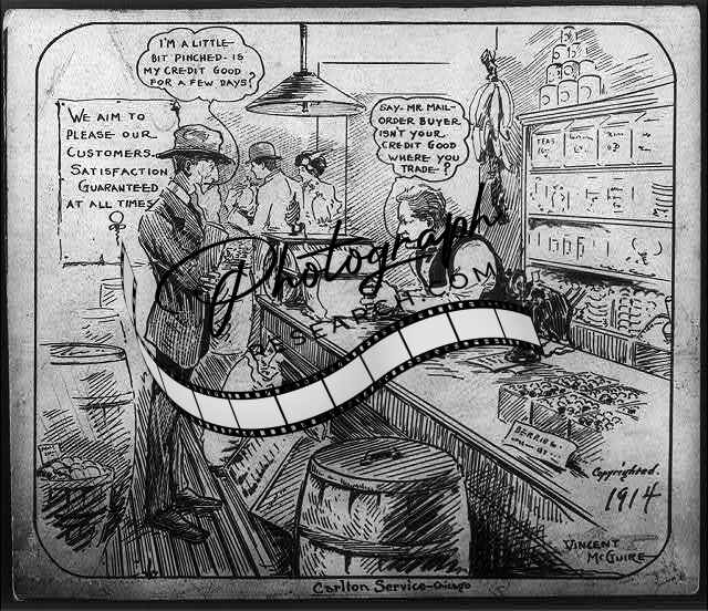 McGuire's Anti-Mail Order Cartoon,c1914,general store
