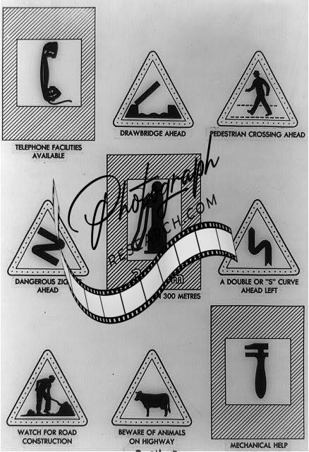 Road signs forming,uniform code,fostered,United Nations,communication,1950