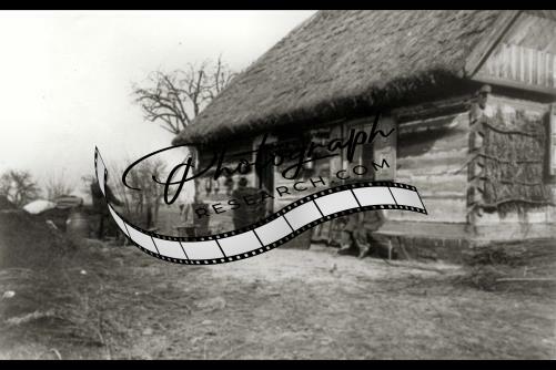 Baskets in front doorway of Polish cottage,2 children,man,1918-1921