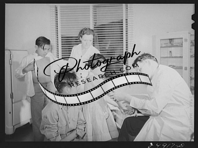 Title: Corpus Christi, Texas. Privately supported tuberculosis clinic supervised by a retired doctor. Majority of patients are Latin-American. Doctor recording medical history of patient. Map shows number of cases in area