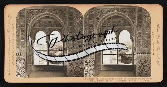 A glimpse of Granada, from the Hall of Ambassadors, Palace of the Alhambra, Spai