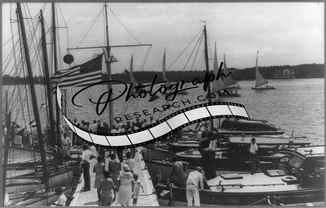 Yacht club dock,racing time,sailing,boats,ship,Island Heights,New Jersey,NJ,1930